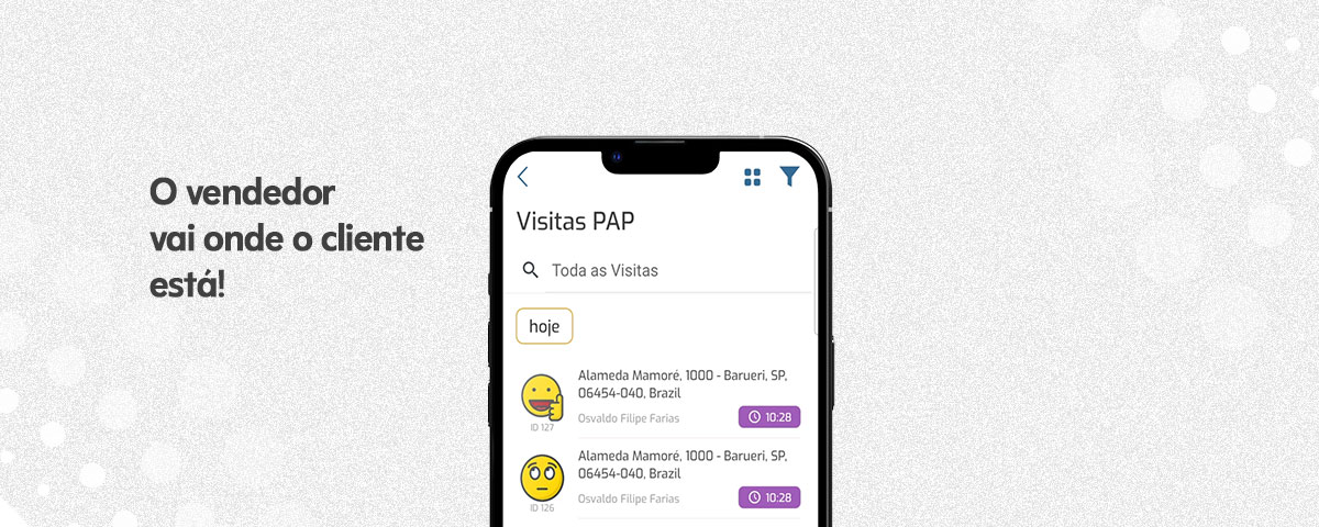 Conheça seu território: Com o mapa de geolocalização, você visualiza a localização dos seus clientes e potenciais clientes, planejando suas visitas de forma estratégica.